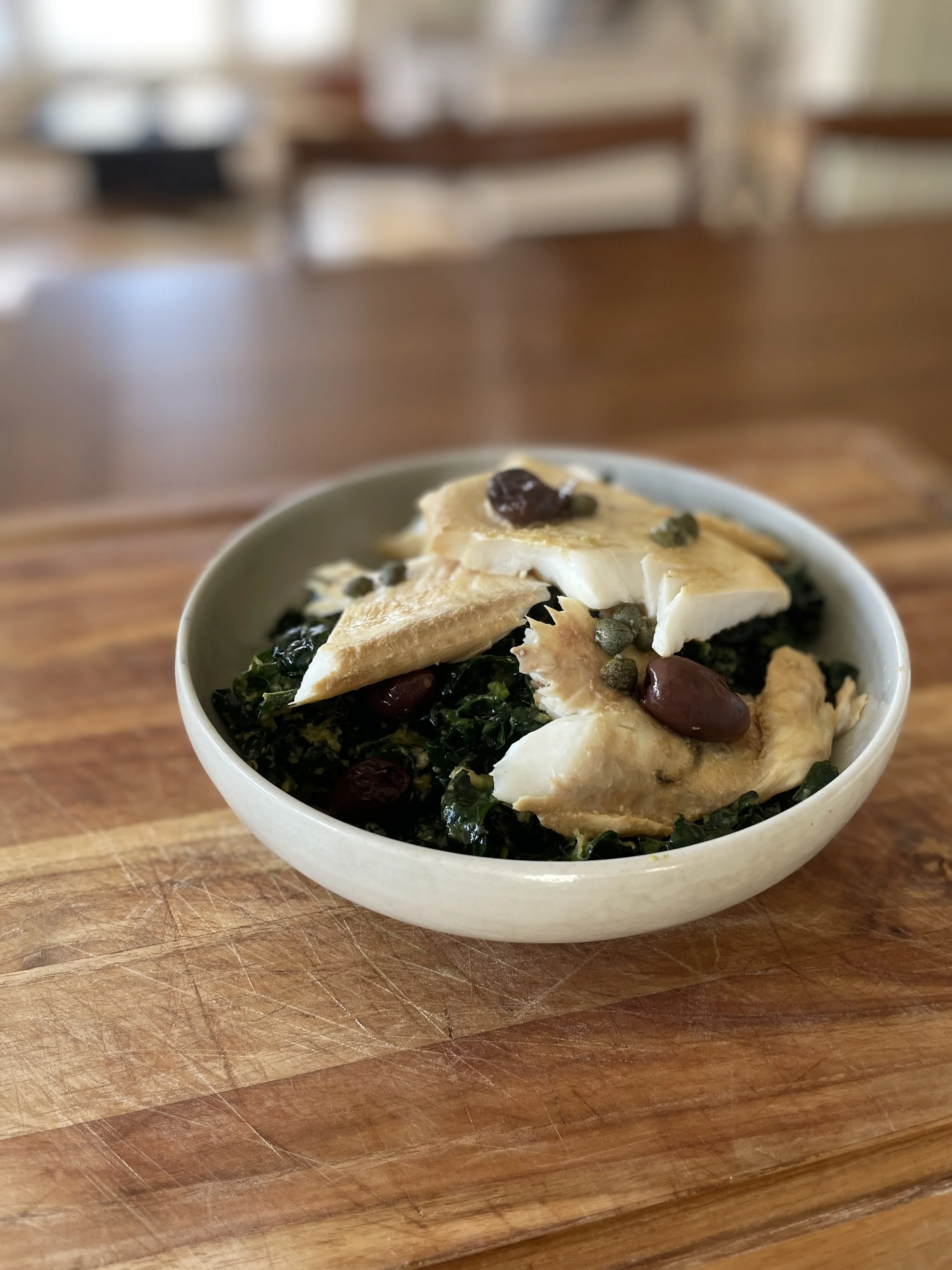 Alex’s Steamed Halibut with Massaged Kale Salad